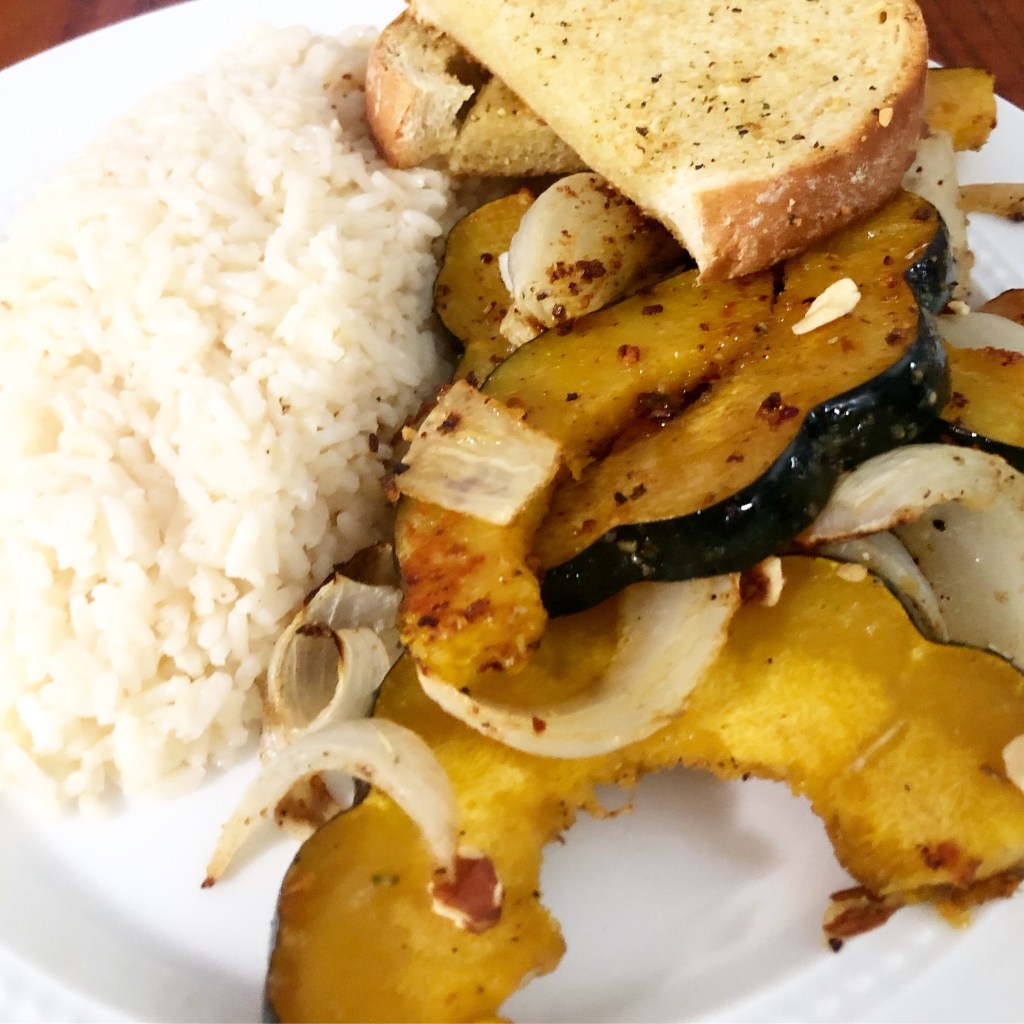 Fall vegetables make me so happy. Acorn squash is one of those hearty, meaty vegetables that was made for cool October nights. There are many things you can do with an acorn squash, but for the recipe we are taking the easy way out and roasting it with onions to create a simple and delicious meal, perfect for weeknight dinners!